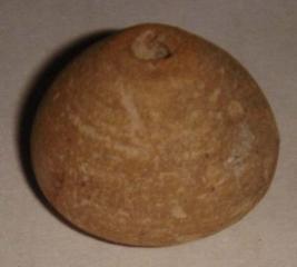 | Description / विवरण | Perforated terracotta bead, betel nut in shape, having rough surface. |