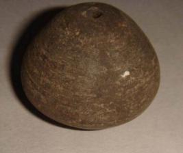 | Description / विवरण | Perforated terracotta bead, betel nut shape with footed base, slight depression at the base, surface is smooth. |