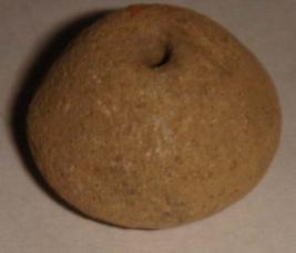 | Description / विवरण | Perforated terracotta bead, betel nut in shape very rough in surface, base is flat. |