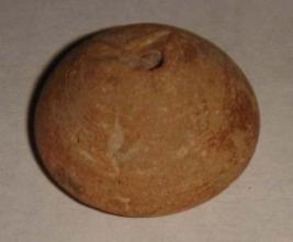 | Description / विवरण | Perforated terracotta bead, betel nut in shape, mild striation marks all over slightly broken at the tip. |