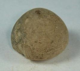 | Description / विवरण | Perforated terracotta bead, betel nut in shape, having mild and close striation marks, body is slightly broken. |