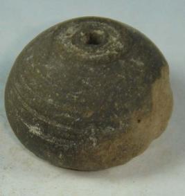| Description / विवरण | Perforated terracotta bead, betel nut in shape, mild striation marks all over the body, body is slightly flaking off. |