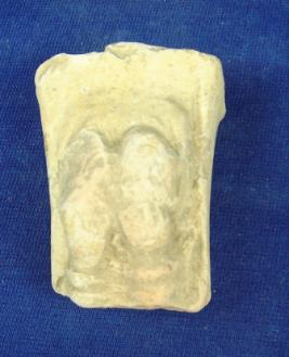 | Description / विवरण | Human figurine of lime in relief. Only leg portion is visible and rest is rubbed off. The figurine is bedecked with anklets. Upper part is mutilated. |