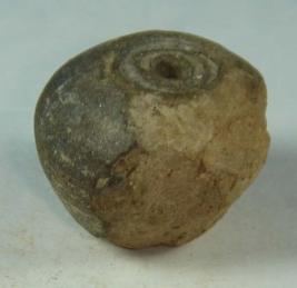 | Description / विवरण | Perforated terracotta bead, biconvex in shape flaking off on the body and top, ill fired which seems from the core. |