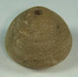 | Description / विवरण | Simple perforated terracotta bead, betel nut in shape, surface is rough base is slightly peeling off. |