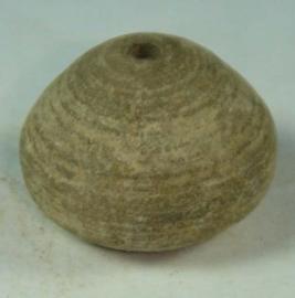 | Description / विवरण | Perforated terracotta bead, betel nut in shape, having close and mild striation marks. |