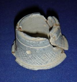 | Description / विवरण | Stone lid circular in shape, having incised lines on the top with design on rim. |