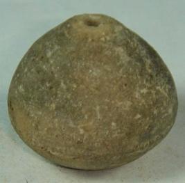 | Description / विवरण | Perforated terracotta bead, having pot like shape, deep depression at the top, surface is rough, ill fired. |