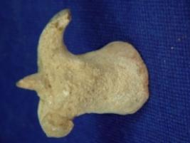 | Description / विवरण | Human shaped terracotta dice having pinched head and hands. Instead of legs it has a flat circular base. |