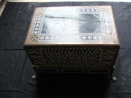| Description / विवरण | The box has a kashmiri lacquer work on wood with black as base colour and decoration in circular and geometric pattern in yellow and golden colour the base of the box is painted black. |