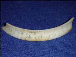 | Description / विवरण | Fragment of a bone bangle with curved design on outer surface and oval on inner surface. |