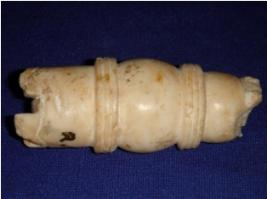 | Description / विवरण | Fragment of bone container to store toilet objects, probably vermillion. It is designed with nodes and internodes of circular line. It is plain and drum shaped. |