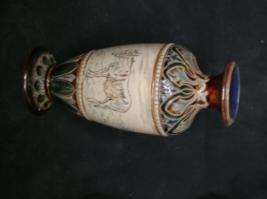 | Description / विवरण | Vase, narrow mouthed, white and blue in colour with engraved horse motifs and leafy patterns. Miss Barlow. |