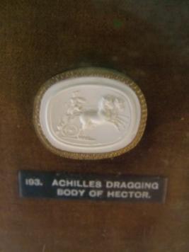 | Description / विवरण | It is a small later Greek and Cracco Roman gems. A cast in POP. Fine relief picture of Achilles Dragging body of Hector in centre. It s in oval shape framed. Framed in golden colour. Maker-Augustus P. Ready. |