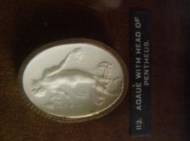 | Description / विवरण | A Greek Gem. It shows Ague with head of Pentheus, he is looking at the sky, holding a spear. Oval shape. Framed. Fine relief work in POP, small cast from British Museum. |