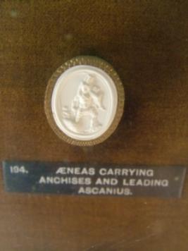 | Description / विवरण | It is a small later Greek and Cracco Roman gems. A cast in POP. Fine relief picture of Achilles carrying anchires and leading ascanius in centre. It s in oval shape framed. Framed in golden colour. Maker-Augustus P. Ready. |