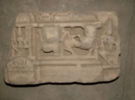 | Description / विवरण | Damaged sculpture with Epigraph of two lions. On both the sides female images. On the Epigraph lion and elephant engraved. |