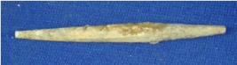 | Description / विवरण | Bone pin, with pointed ends both broken at tip, earthly incrustation all over, ridges on the surface. |