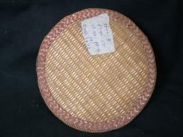 | Description / विवरण | It is a cover, used to cover the upper portion of glass. It is made of strips of bamboo and palm leaves and designed in criss-cross pattern. It s edge is designed with geometrical pattern. |