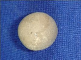 | Description / विवरण | Small terracotta ball, round in shape with rough surface, probably used as a sling ball. Some parts are broken. |