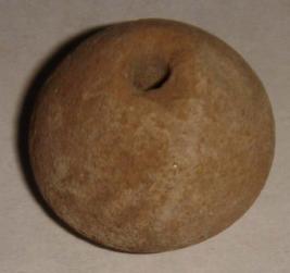 | Description / विवरण | Plain, perforated terracotta bead, betel nut in shape. |
