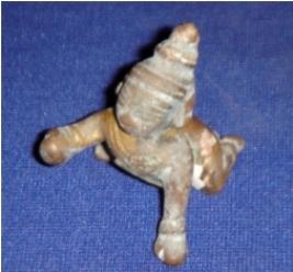 | Description / विवरण | Independent metal image of Ladu Gopal, tiny in size and depicting crawling and holding a Ladu with the right hand. He is wearing a crown, earrings, necklace, bangles and anklets. |