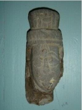 | Description / विवरण | Independent stone image of three eyes Shiva having Jata mukuta. Only head is visible and face is mutilated. |