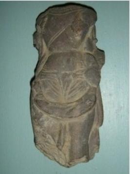 | Description / विवरण | Independent stone image of standing Vishnu. The head, hands and legs below from knee are missing. The figure is wearing a drapery in his waist, sacred thread, and a Varmala, adorned with jewels like necklace. The left hand is partly visible. |
