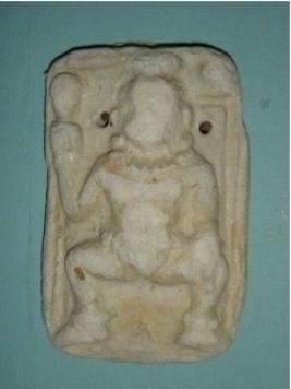 | Description / विवरण | Independent terracotta human figure may be a Shivgana or a Yakshi, is sitting in easy pose. It is right hand holding a Ayush and left hand is resting on thigh. The figure has Jata mukuta and adorned with jewels like, Kundala, necklace, wrist band and anklets. A portion of drapery also seen in his waist. |