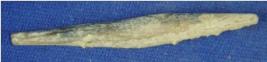 | Description / विवरण | Bone pin with ridged body and pointed ends, the tip of one end is broken. Earthly incrustation all over. |