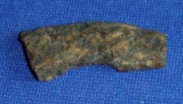 | Description / विवरण | Fragment of copper piece, it is probably the part of blade and semi circular in shape, having rusting surface. |