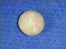 | Description / विवरण | Tiny, plain terracotta ball, ill fired, having perforation, with slightly flat base. |