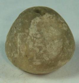 | Description / विवरण | Simple, perforated terracotta bead, betel nut in shape, with slightly deep depression at the base. The surface is peeling off at few places. |
