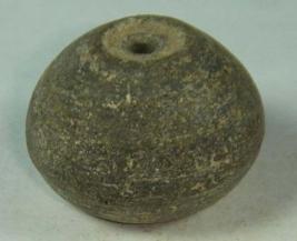| Description / विवरण | Simple, perforated terracotta bead, betel nut in shape. The tip and base have slight depression. |