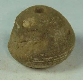| Description / विवरण | Small, perforated terracotta bead, betel nut in shape. Lower body has striation marks. The middle body is partly broken. |