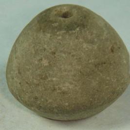 | Description / विवरण | Pot shaped, perforated terracotta bead. It is simple with a slightly deep depression at the base. |
