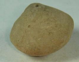 | Description / विवरण | Pot shaped, perforated terracotta bead. It is simple with slightly uneven surface and pointed tip. |