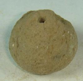 | Description / विवरण | Perforated terracotta bead betel nut in shape with a depression at the base. Its surface is pitted and rubbed off. |