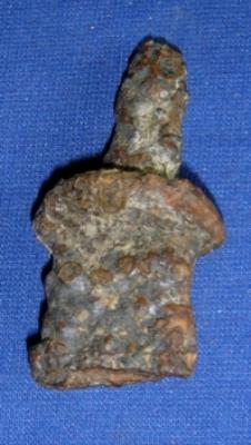 | Description / विवरण | Fragment of copper knife probably, a pointed projection at one end probably to fix it with handle or broken knife, it is rusted. |