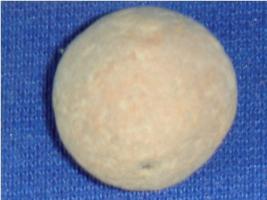 | Description / विवरण | Plain, spherical small ball, probably used as a sling ball, part of it is broken at one place. |