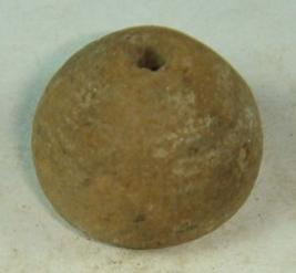 | Description / विवरण | Ill fired, perforated terracotta bead, betel nut in shape with rough surfaces. |