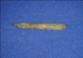 | Description / विवरण | Fragment of a copper pin, only the tapering blunt edge is visible. Rest of the parts are missing. |