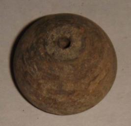 | Description / विवरण | Well made, perforated terracotta bead, betel nut in shape with a slightly depressed flat base. The tip is flat. |
