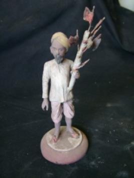 | Description / विवरण | It is a clay model of Fan seller. Man is holding multicoloured fans and standing on circular pedestal. He is wearing a yellow turban. |