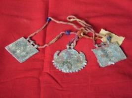 | Description / विवरण | It is a necklace having two rectangular pendants with one semi-circular pendant. It has relief work over it. |