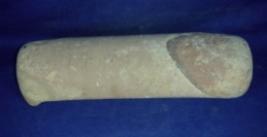 | Description / विवरण | Long and cylindrical stone pestle, having broad circular ends, which are partially broken. It has plain surfaces and probably used as a pestle. |