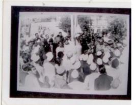 | Description / विवरण | The photograph shows the hoisting of Indian flag. A man is hoisting the flag in middle of mass. Some are wearing Kurta, Pajama, whereas some are dressed in English style. Some men are wearing Gardhe Topi. In background part of houses, tress & some children are visible. |