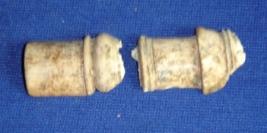 | Description / विवरण | Fragment of decorative bone object, having cylindrical upper body part, while lower portion having a carinated marks. Surface shows weathering effect. It is broken in two parts. |