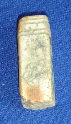| Description / विवरण | Fragment of decorative bone object, rectangular in shape. One end having parallel incised lines, body has four incised floral design, each on both the side, surface having weathering effect. |