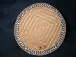 | Description / विवरण | It is a circular mat woven by using thin flat bamboo strips. It is used as a glass cover. On the back side bold strips are used. It has two borders. |